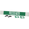 The B-681 high performance pipemarker is a surface printed polyester label with a polyester overlaminate that is applied to a fiberglass plastic carrier.
